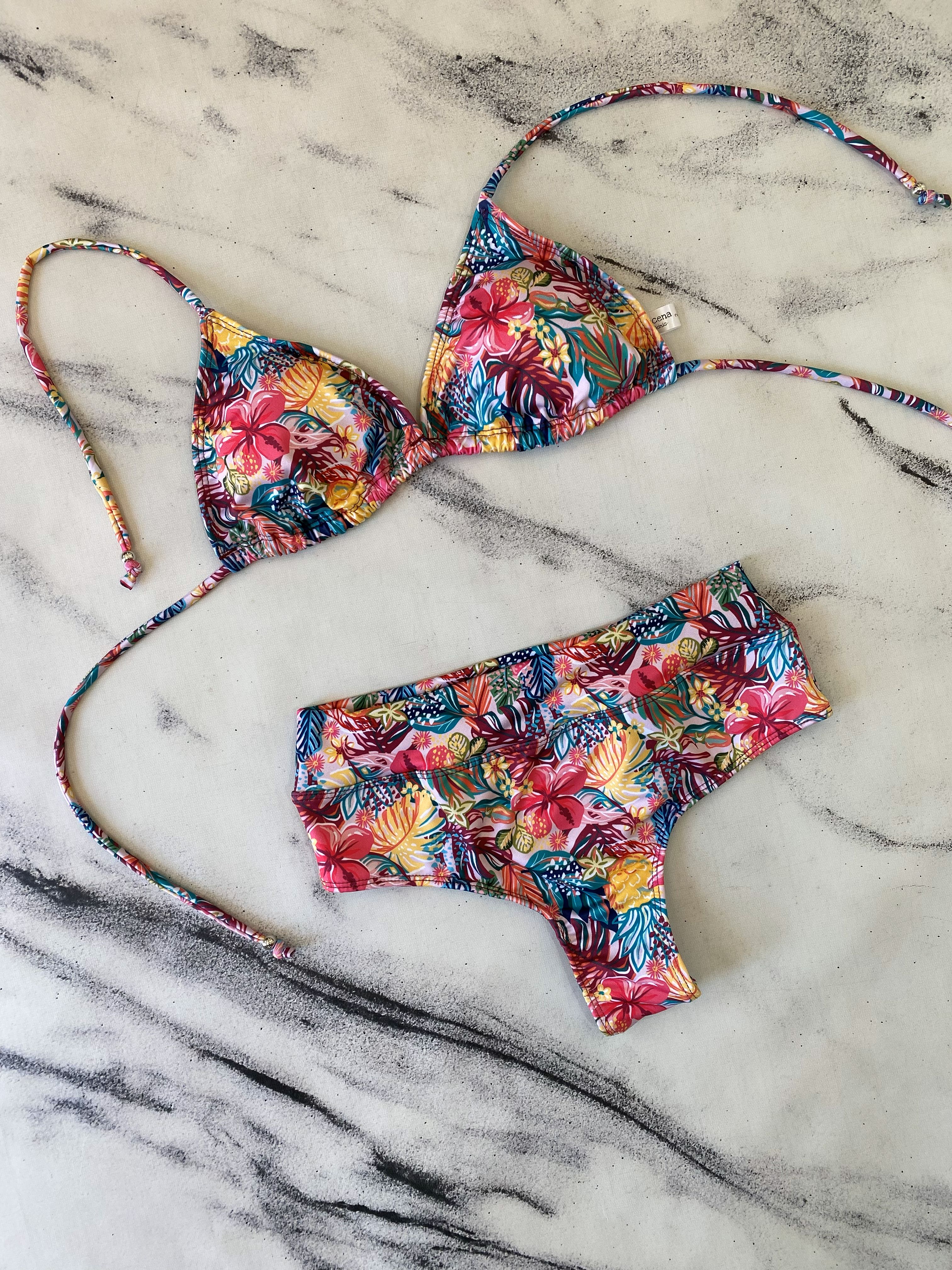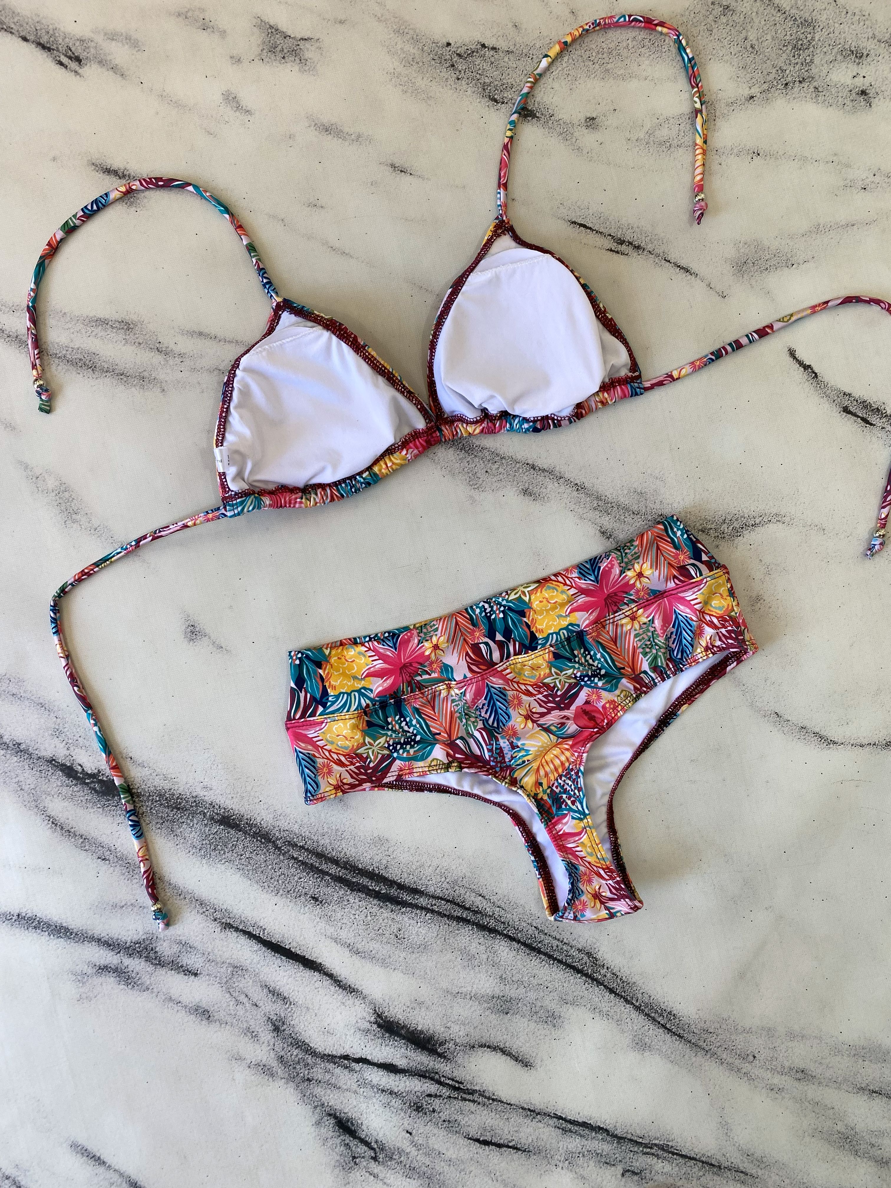 La modelo usa un talle de bikini como referencia.